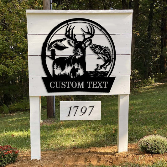 Hunting And Fishing Monogram Metal Sign