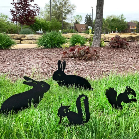 Rabbit and Squirrel Set of 4 Yard Stakes|Metal Home Decor|Metal Yard Art