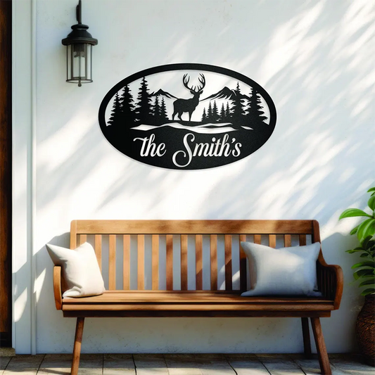Personalized Oval Deer Metal Cabin Sign