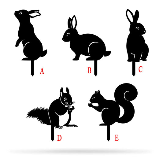 Metal Garden Art - Rabbit Squirrel 5-Pack