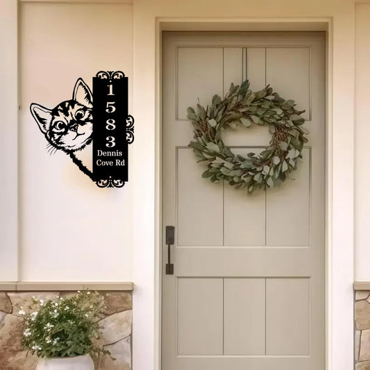 Custom Peeping Cat Door Address Metal Sign