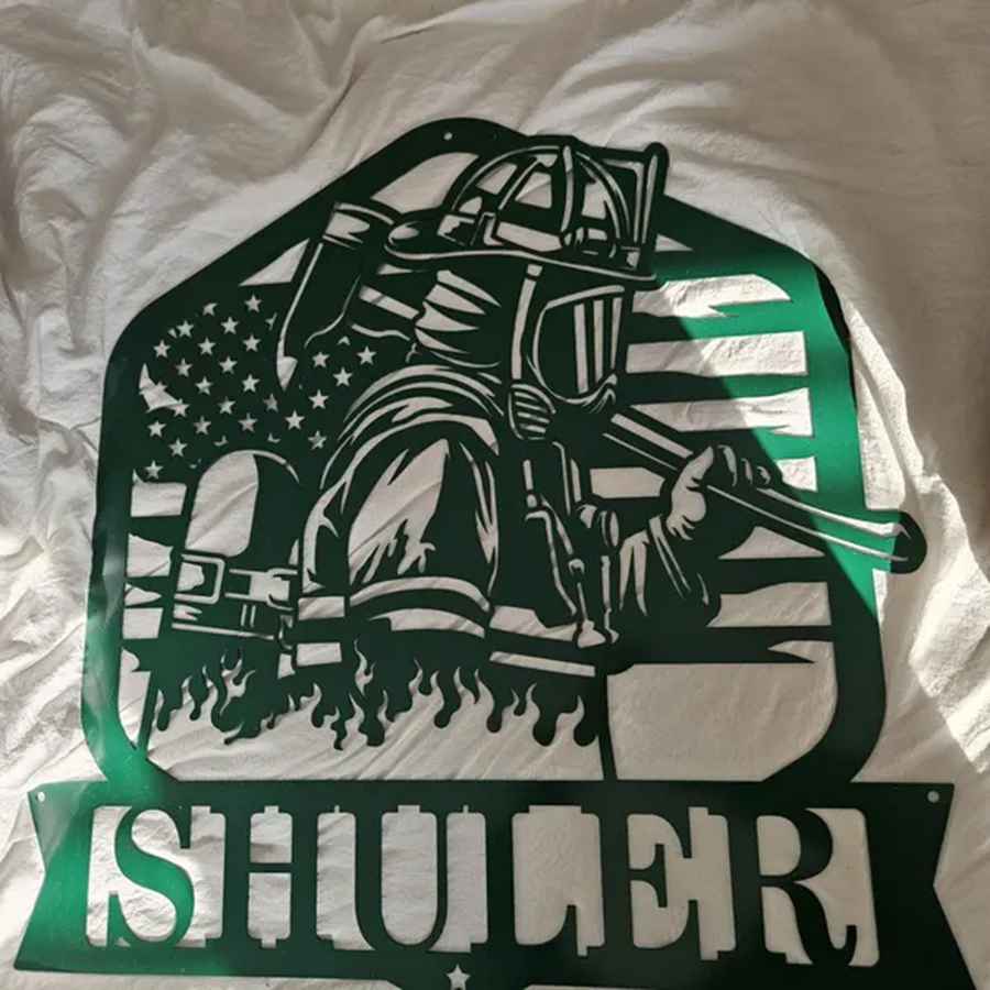 Crafted from durable 16-gauge metal with precision laser cutting, this personalized laser cut decor is powder coated for lasting indoor and outdoor use. Whether displayed in a man cave, fire station, or home, it makes an impressive statement.